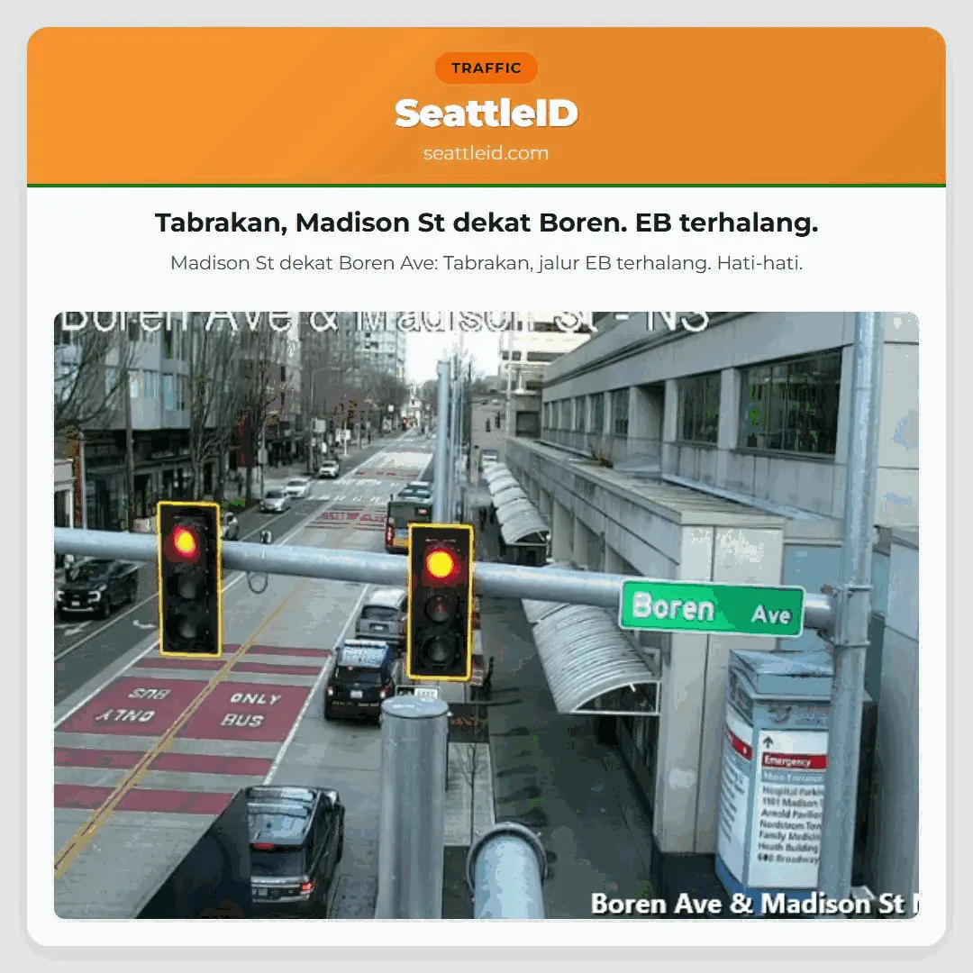 Tabrakan, Madison St dekat Boren. EB terhalang.