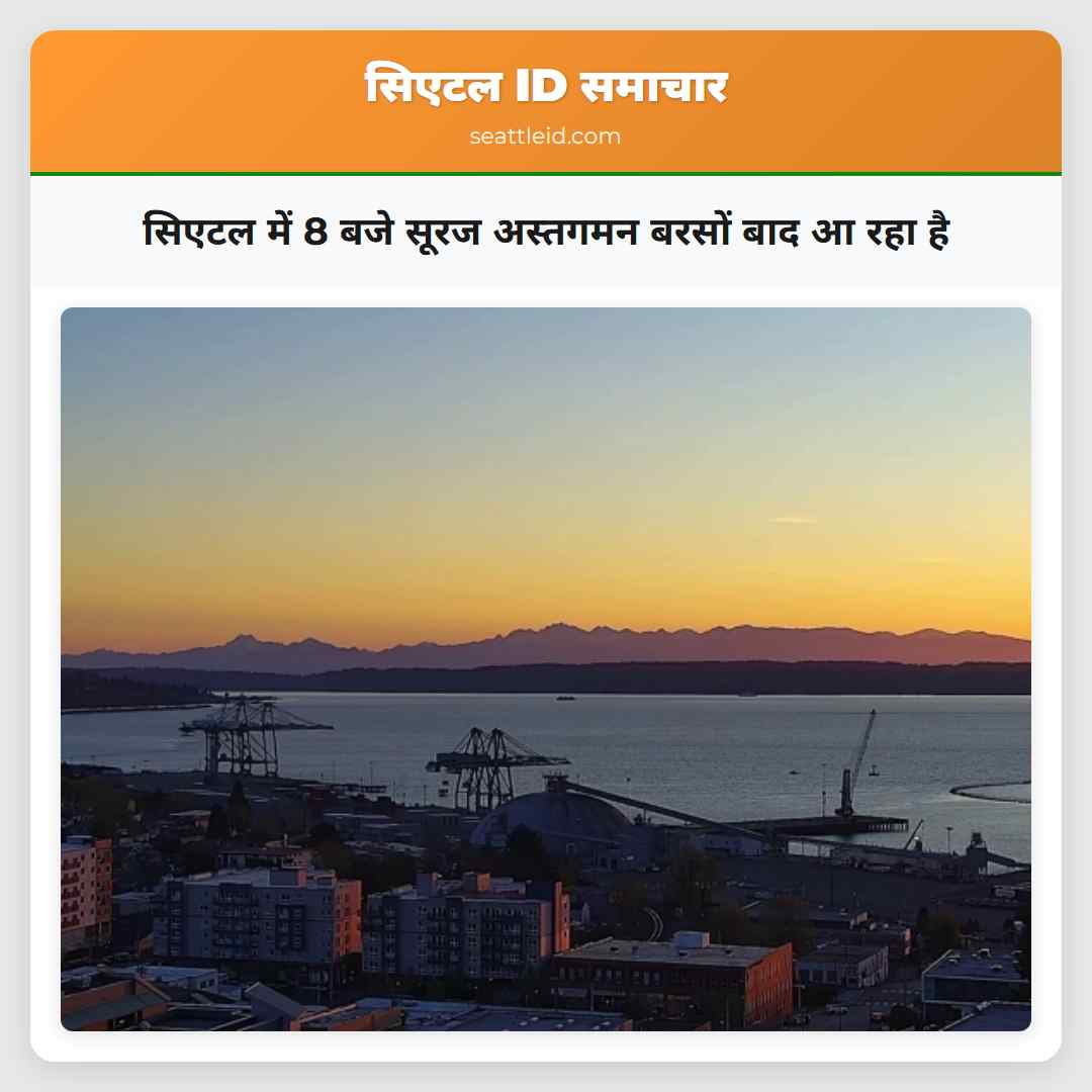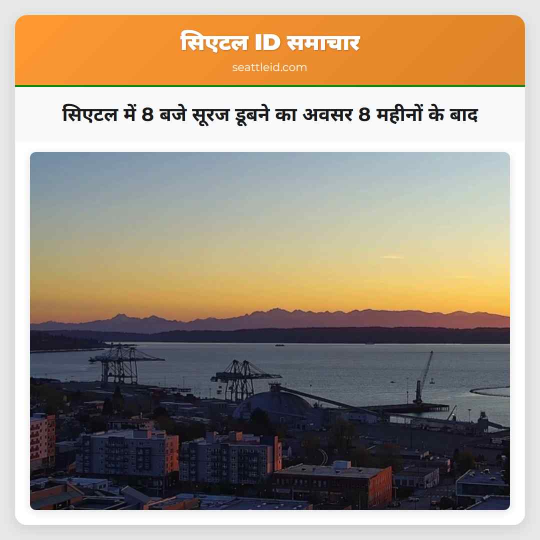सिएटल में 8 बजे सूरज डूबने का अवसर आ रहा है! 8 महीनों के बाद यह घटना हो रही है. आप भी देखें इस दिलचस्प घटना को.
