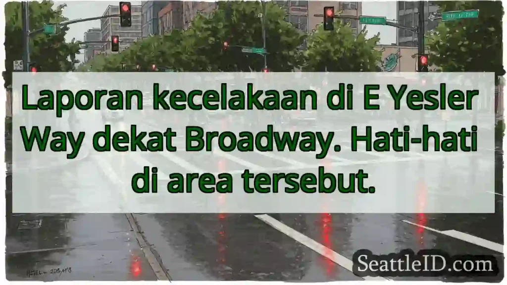 Laporan kecelakaan di E Yesler Way dekat Broadway. Hati-hati di area tersebut.