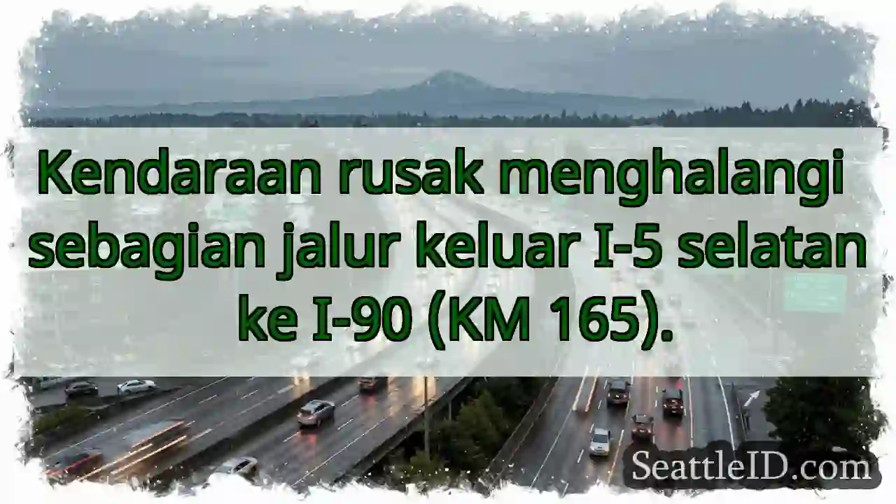 Kendaraan rusak menghalangi sebagian jalur keluar I-5 selatan ke I-90 (KM 165).