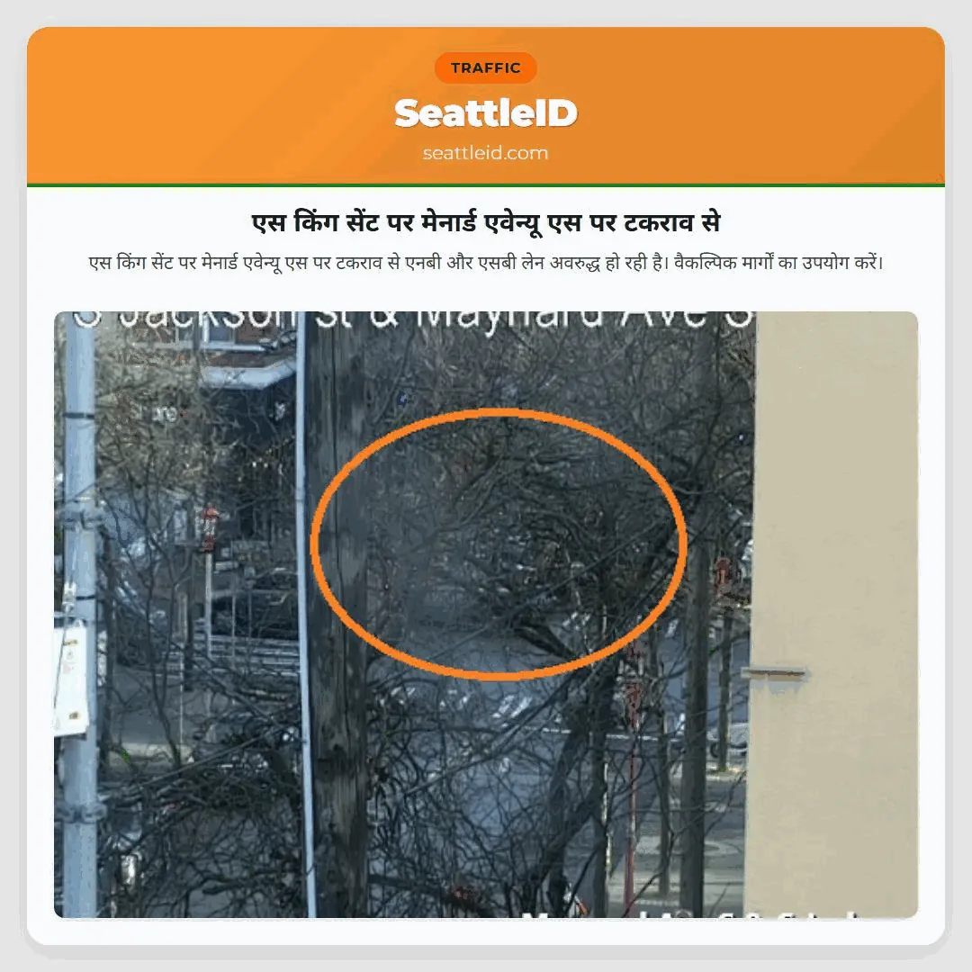 एस किंग सेंट पर मेनार्ड एवेन्यू एस पर टकराव से एनबी और एसबी लेन अवरुद्ध हो रही है। वैकल्पिक मार्गों का उपयोग करें।