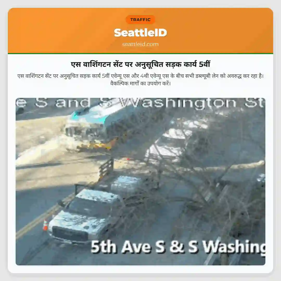 एस वाशिंगटन सेंट पर अनुसूचित सड़क कार्य 5वीं एवेन्यू एस और 4थी एवेन्यू एस के बीच सभी डब्ल्यूबी लेन को अवरुद्ध कर रहा है। वैकल्पिक मार्गों का उपयोग करें।