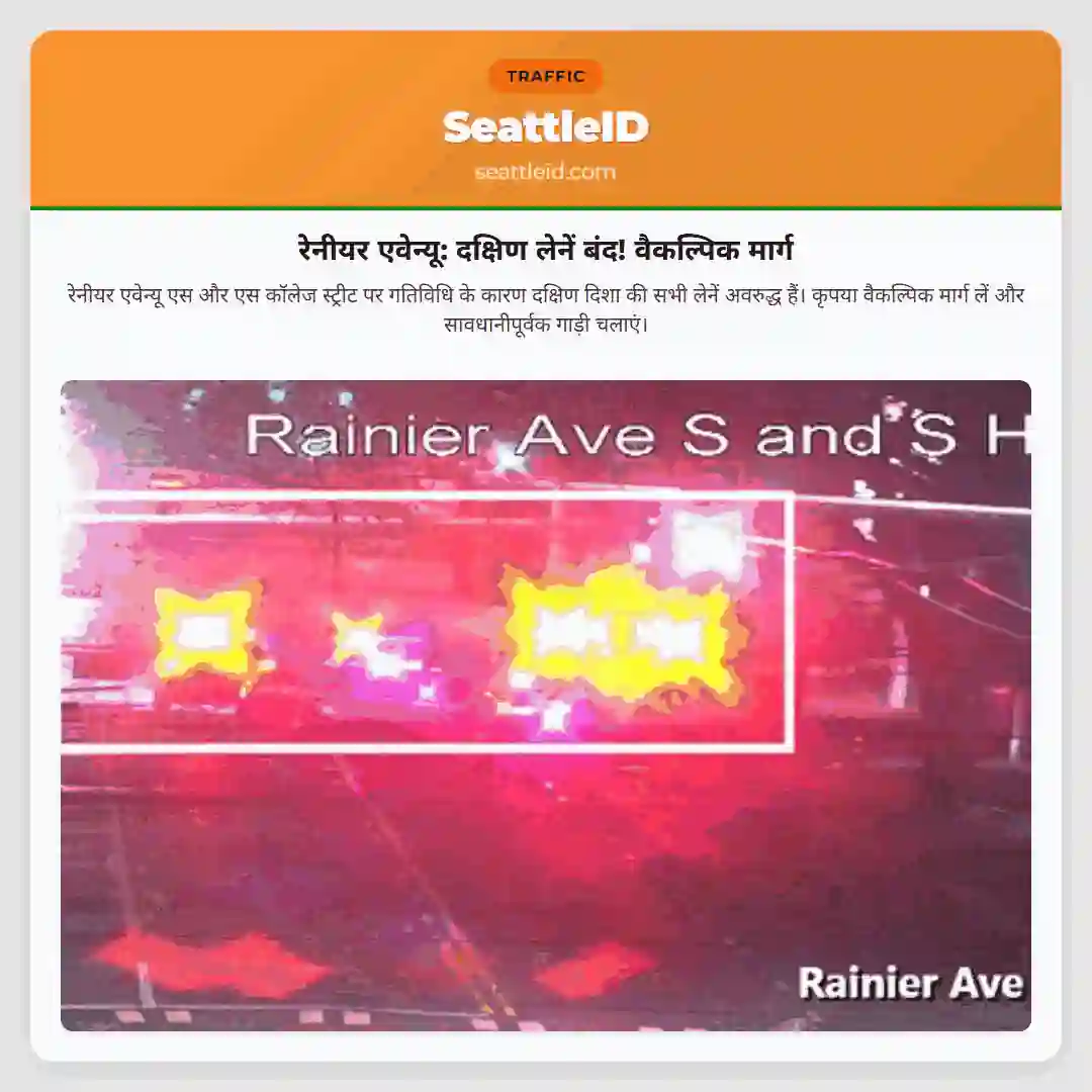 रेनीयर एवेन्यू: दक्षिण लेनें बंद! वैकल्पिक मार्ग लें।