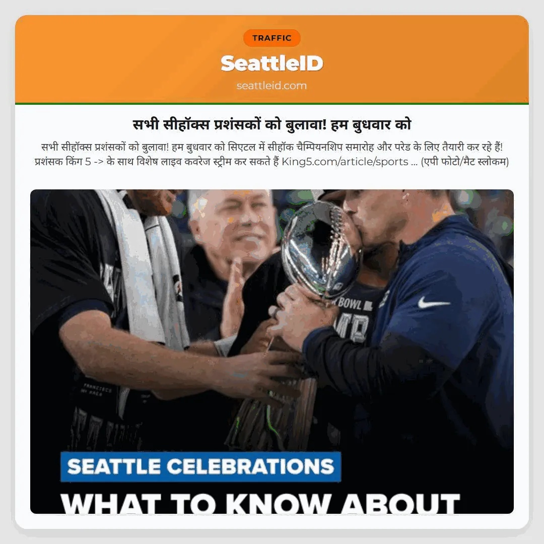 सभी सीहॉक्स प्रशंसकों को बुलावा! हम बुधवार को सिएटल में सीहॉक चैम्पियनशिप समारोह और परेड के लिए तैयारी कर रहे हैं! प्रशंसक किंग 5 -> के साथ विशेष लाइव कवरेज स्ट्रीम कर सकते हैं