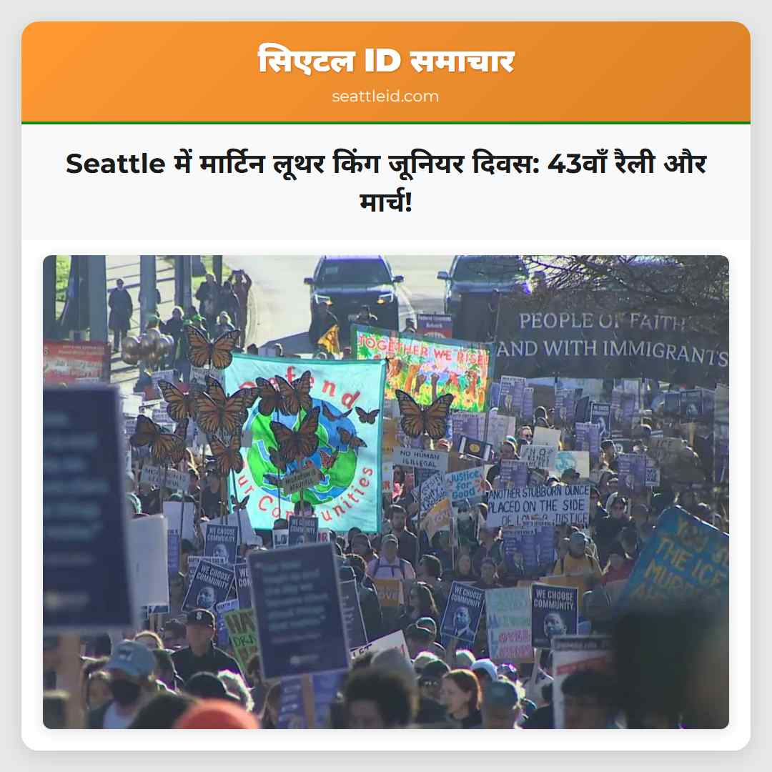 सिएटल में डॉ. किंग को श्रद्धांजलि अर्पित करने के लिए हज़ारों लोग जमा हुए, और उनके प्रेरणादायक संदेश को याद करते हुए अन्याय के विरुद्ध कार्रवाई करने का आग्रह किया गया।