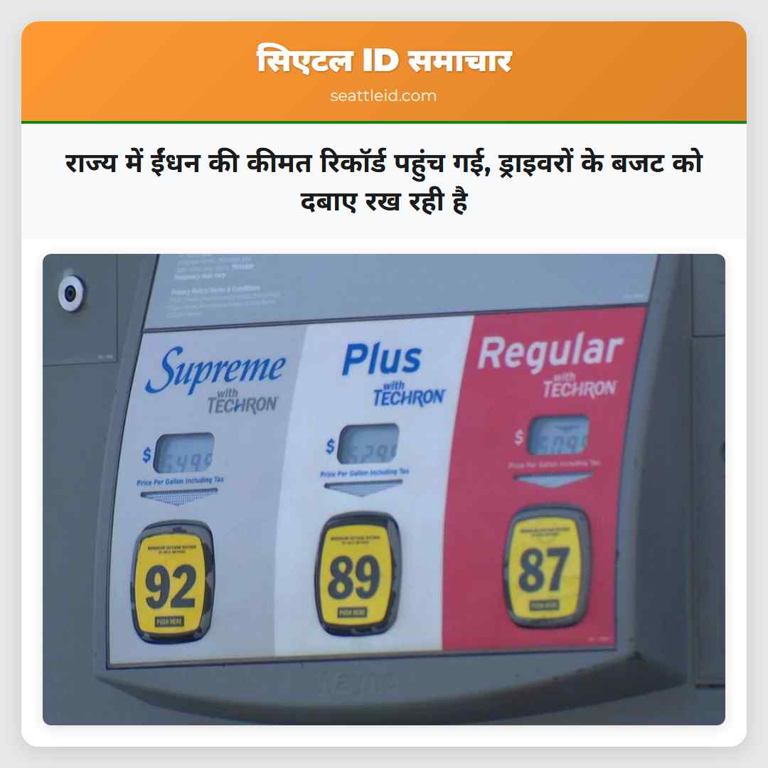 राज्य के सभी क्षेत्रों में ड्राइवरों को पेट्रोल पंप पर रिकॉर्ड उच्च कीमतों के बर्बादी के लिए भुगतान करना पड़ रहा है, जिसके कारण यात्रा, विद्यालय में छात्रों के छोड़े जाने और सामान्य चलने के कार्य घर के बजट पर बड़ा दबाव डाल रहे हैं. राज्य भर में एक गैलन ईंधन की औसत कीमत अब $5.57 हो गई है, जो AAA के अनुसार एक नया रिकॉर्ड है. किंग काउंटी में औसत कीमत $5.82 है. पाइर्स काउंटी में ड्राइवरों को औसतन $5.69 के लिए भुगतान करना पड़ रहा है. AAA के अनुसार राज्य में सबसे महंगा ईंधन पैसिफिक काउंटी में है, जहां औसत कीमत प्रति गैलन $6.03 है. राज्य में सबसे सस्ता ईंधन एसोटिन काउंटी में है, जहां औसत कीमत $4.87 है. एक साल पहले राज्य में औसत कीमत $4.27 थी, जो अब राष्ट्रीय औसत के बराबर है. राज्य में ईंधन की कीमत उच्च है कारण ईंधन कर और जलवायु प्रारंभिक कार्यक्रमों से उत्पन्न खर्च के कारण है. कीमतें जल्द ही कम नहीं होंगी. बारेल के तेल की कीमत गुरुवार को $126 के पार पहुंच गई, जब व्यापारियों ने ईरान के युद्ध के लंबे चलने के डर के कारण चिंता व्यक्त की. राष्ट्रपति ट्रंप ने ईरानी बंदरगाहों पर एक ब्लॉकेड बढ़ा दिया.