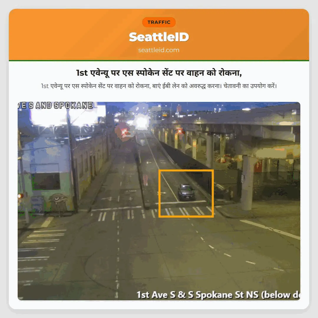 1st एवेन्यू पर एस स्पोकेन सेंट पर वाहन को रोकना, बाएं ईबी लेन को अवरुद्ध करना। चेतावनी का उपयोग करें।