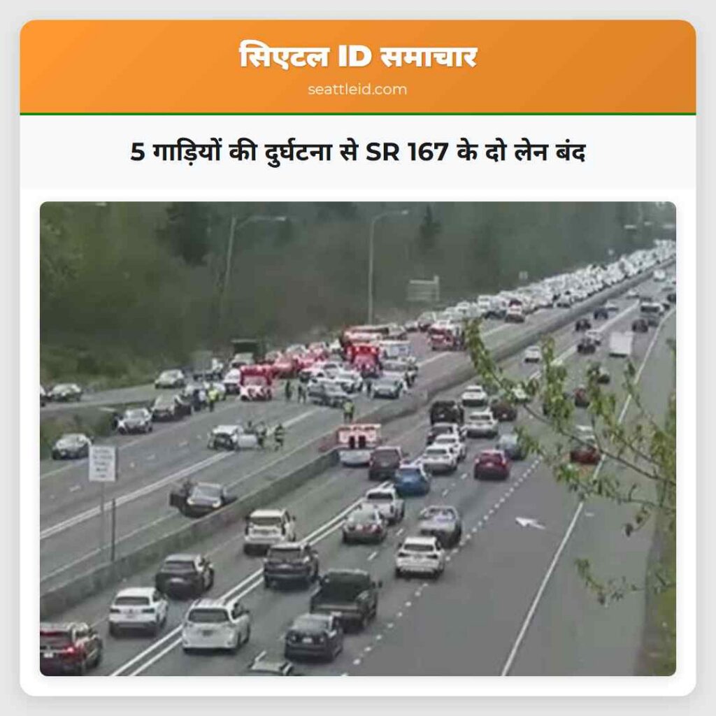 रेंटन, वाशिंगटन – शनिवार के दिन दोपहर के बाद केंट में एक दुर्घटना ने उत्तर दिशा में SR 167 के दो लेन को ब्लॉक कर दिया, जब ट्रॉपर्स एक ड्राइवर की तलाश में थे जो दुर्घ टना स्थल से पैदल भाग गया. दुर्घटना दक्षिण 180 वें स्ट्रीट के पास माइलपोस्ट 25 के पास लगभग 2 बजे के बाद हुई, जिसकी जानकारी वाशिंगटन राज्य ट्रांसपोर्टेशन विभाग ने दी. वाशिंगटन राज्य पैट्रोल ने इसे ‘पांच गाड़ियों की चोट वाली दुर्घटना’ कहा और बताया कि दुर्घटना के कारण चलाने वाले ड्राइवर ने स्थल छोड़ दिया. ट्रॉपर्स अभी भी आरोपी ड्राइवर की तलाश में थे. बावजूद गाड़ियों की संख्या, वाशिंगटन राज्य पैट्रोल ने सबसे गंभीर चोट के रूप में ‘एक संभावित टांग का टूटा’ कहा. लेन खोले जाने का अनुमानित समय नहीं दिया गया, लेकिन तोड़-फोड़ के लिए तोड़ा गया.