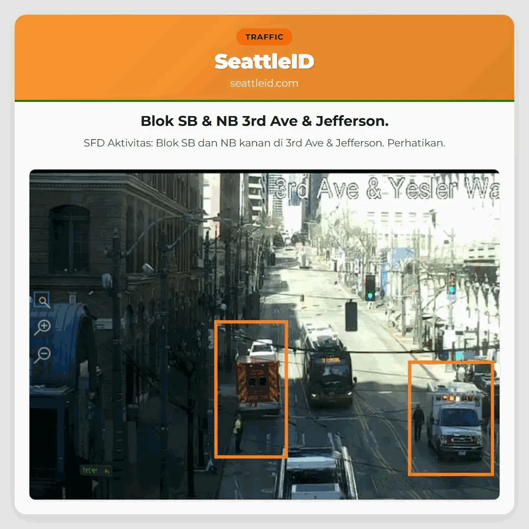 10/02/2026 11:11 Seattle traffic Blok SB & NB 3rd Ave & Jefferson. Blok SB & NB 3rd Ave & Jefferson. SFD Aktivitas: Blok SB dan NB kanan di 3rd Ave & Jefferson. Perhatikan. ताजा खबर [I-5 NB] 5 NB zablokowane Rain, Ice & More for Meetup! [SR-99] एसआर 99 लेन आज रात बंद Caution: Single lane SB on Beacon [I-5] Fed Way 5 South Bridge Work Seattle’s Blue & Green Parade!