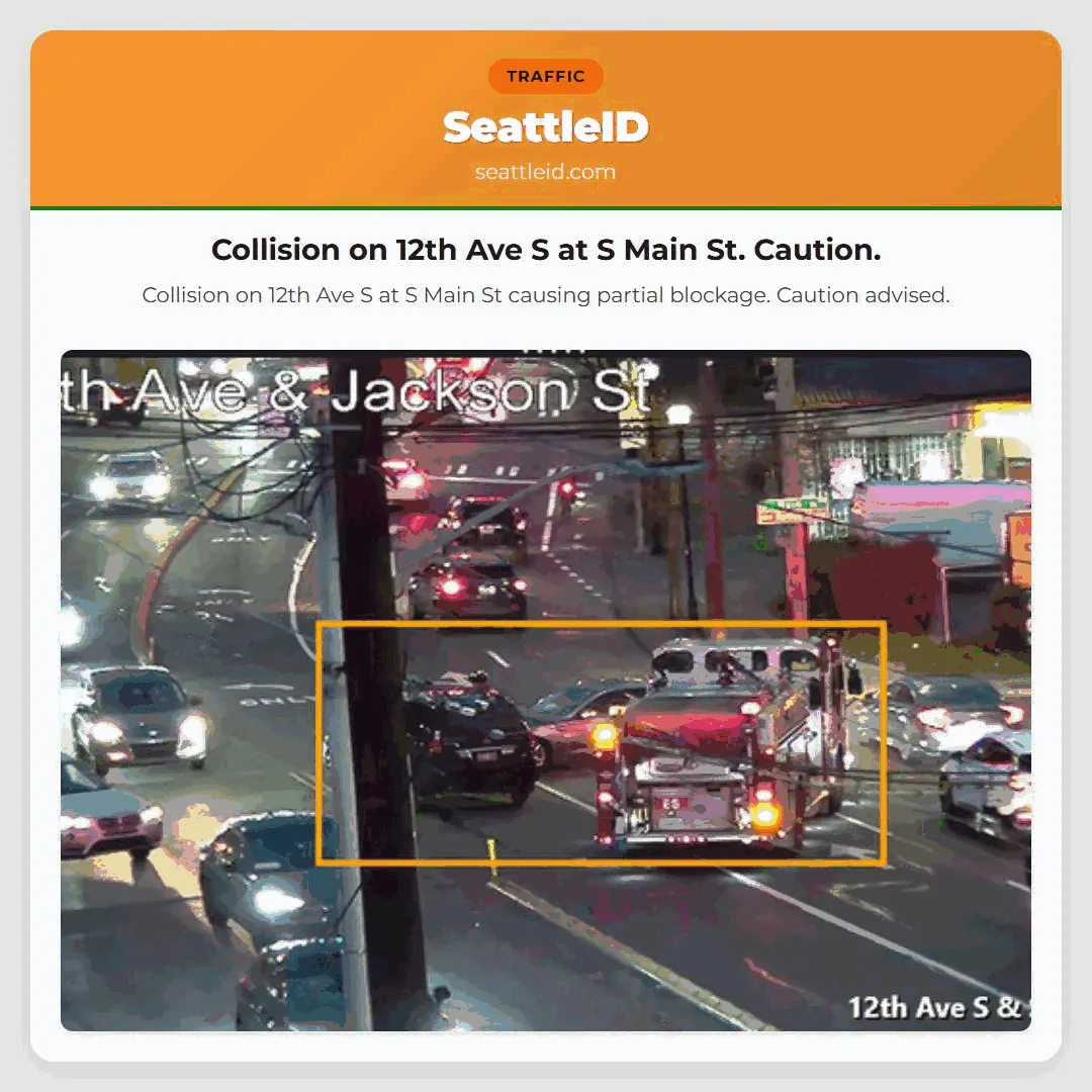 12/02/2026 17:51 Seattle traffic Collision on 12th Ave S at S Main St. Caution. Collision on 12th Ave S at S Main St. Caution. Collision on 12th Ave S at S Main St causing partial blockage. Caution advised. ताजा खबर Blokuje NB/SB pasy 1st Ave S. Znajdź alternatywę. Pembunuhan di 3800 South Angeline Street, Kamis [I-405 SB] I-405 southbound, 112th Ave SE (MP 9) collision NB prawy pas 3rd Ave zablokowany. EB pasy Collision on Rainier Ave S at S Weller St; all [US-2] UPDATE 2: US 2 fully blocked in both directions