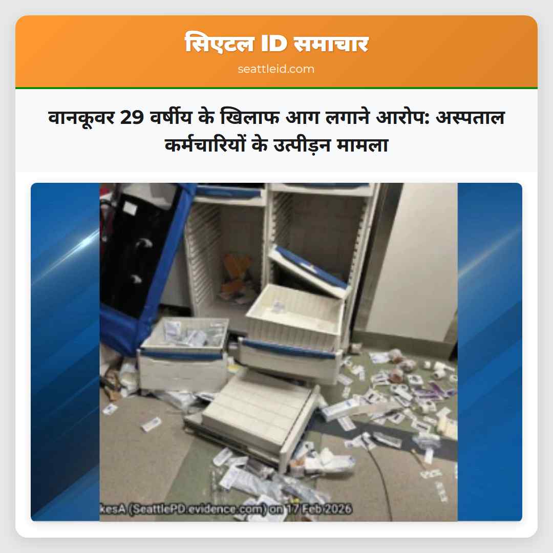 19/02/2026 सिएटल समाचार सिएटल में एक वानकूवर के 29 वर्षीय व्यक्ति के खिलाफ आग लगाने और अस्पताल कर्मचारियों के उत्पीड़न के आरोप मामला अप्रत्यक्ष रूप से सामने आया