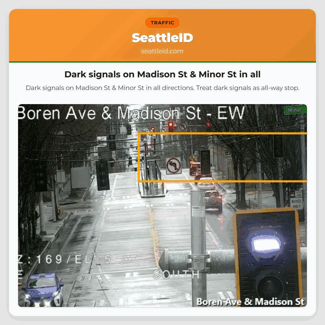 21/02/2026 12:24 Seattle traffic Dark signals on Madison St & Minor St in all Dark signals on Madison St & Minor St in all directions Dark signals on Madison St & Minor St in all directions. Treat dark signals as all-way stop. ताजा खबर Dark signals on Madison St & Minor St in all कैपिटल हिल में गोलीबारी एक व्यक्ति मारे गए एक गिरफ्तार किया गया Tidak ada visual, laporan tabrakan di SW Roxbury Tidak ada visual, tetapi laporan tabrakan yang [I-5 NB] Di I-5 arah utara, di utara S 200th St (MP 152) Tidak ada visual, tapi laporan tabrakan