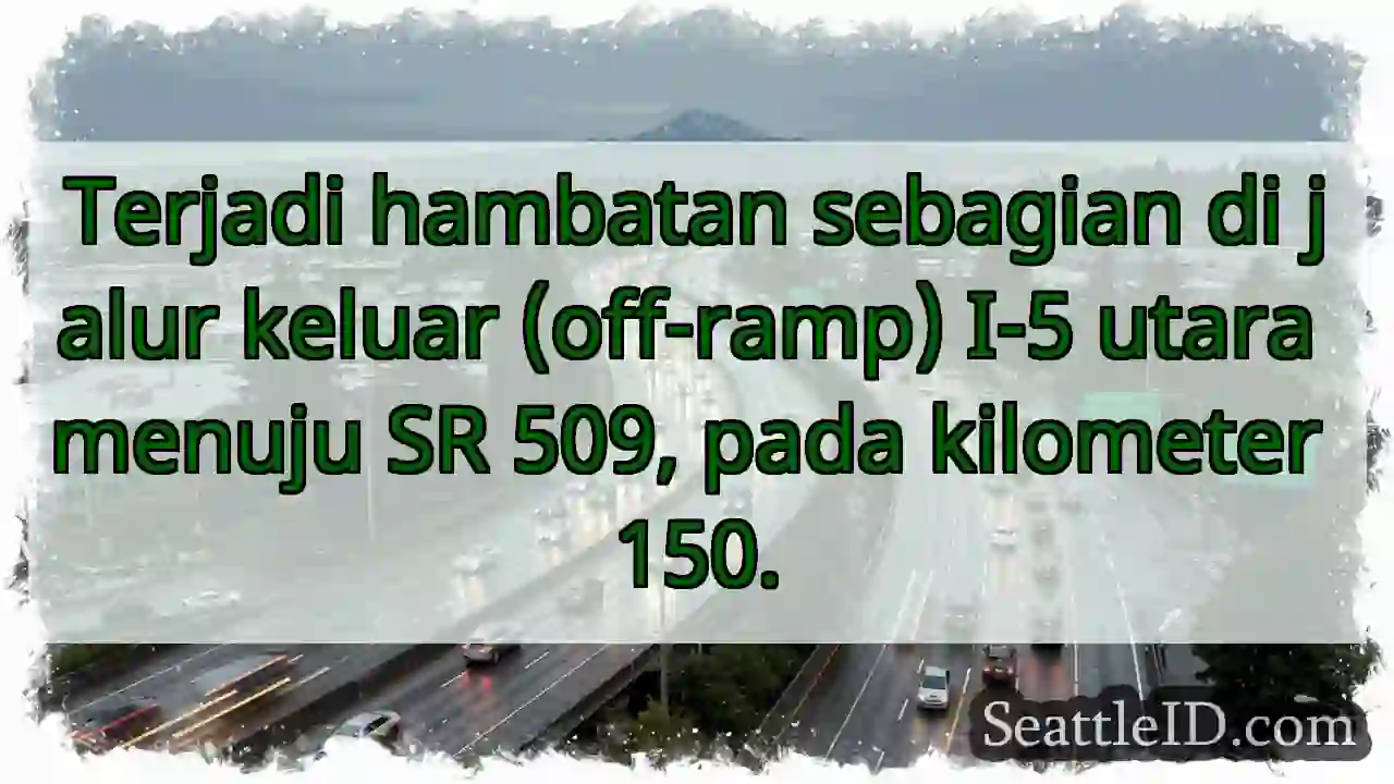 10/12/2025 10:00 Seattle traffic Hambatan I-5 Utara! Perhatikan! Hambatan I-5 Utara! Perhatikan! Terjadi hambatan sebagian di jalur keluar (off-ramp) I-5 utara menuju SR 509, pada kilometer 150. ताजा खबर Hambatan I-5 Utara! Perhatikan! Tabrakan US 2 Timur. Jalur kiri ditutup. Jalan Edgewick Terputus! Hujan Deras Waspada! Cuaca buruk masih berlanjut. वॉशिंगटन राज्य बाढ़ के पानी में गाड़ी चलाने से बचें – जानलेवा खतरा! SR 99 Ditutup: Lalu Lintas Kapal!