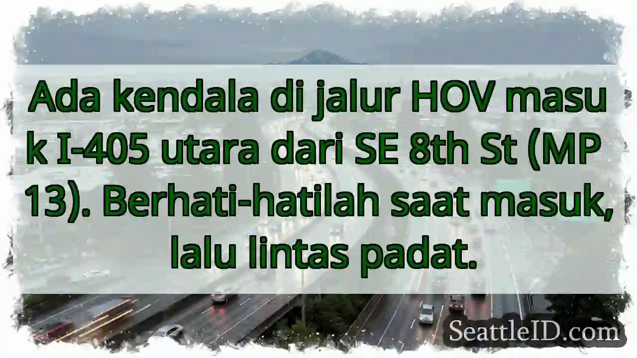 Ada kendala di jalur HOV masuk I-405 utara dari SE 8th St (MP 13). Berhati-hatilah saat masuk, lalu lintas padat.