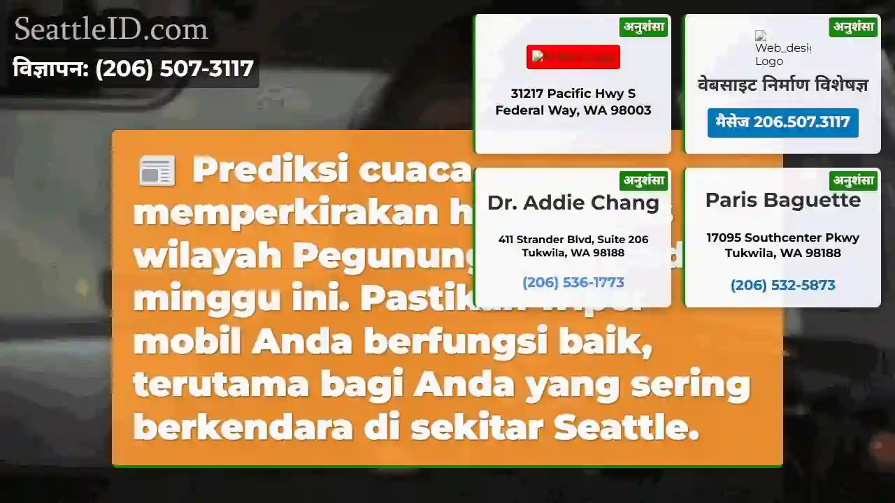 Prediksi cuaca memperkirakan hujan deras di wilayah Pegunungan Cascade minggu ini. Pastikan wiper mobil Anda berfungsi baik, terutama bagi Anda yang sering berkendara di sekitar Seattle.