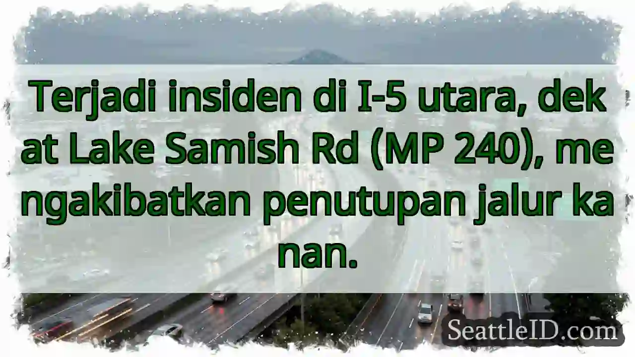 07/12/2025 15:30 Seattle traffic I-5 Utara: Jalur Kanan Ditutup! I-5 Utara: Jalur Kanan Ditutup! Terjadi insiden di I-5 utara, dekat Lake Samish Rd (MP 240), mengakibatkan penutupan jalur kanan. ताजा खबर I-5 Utara: Jalur Kanan Ditutup! सिएटल में भारी वर्षा की चेतावनी बाढ़ का खतरा और उच्च ज्वार की संभावना Sinyal kiri bermasalah! Hati-hati! Tabrakan I-5 Selatan! Blokir jalur tengah kanan. Jadwal Feri Desember! Cek Tabrakan HOV I-5 Utara. Macet!