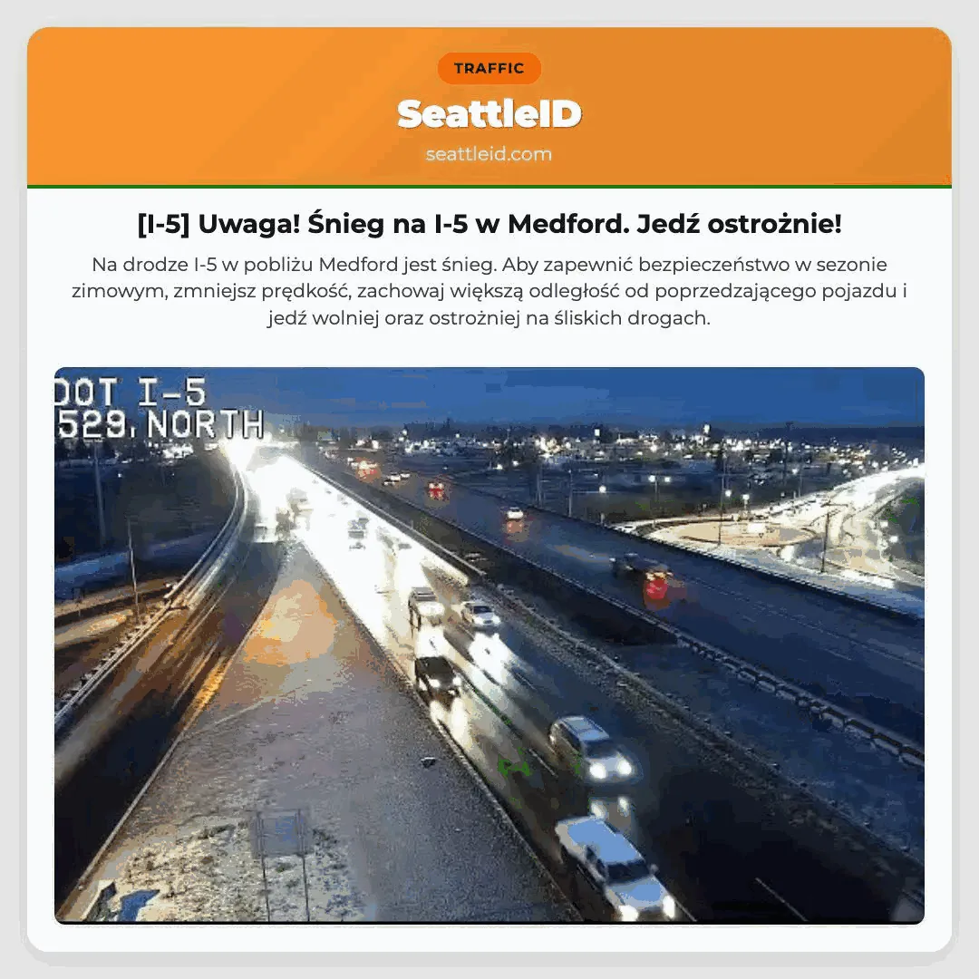 Uwaga! Śnieg na I-5 w Medford. Jedź ostrożnie!