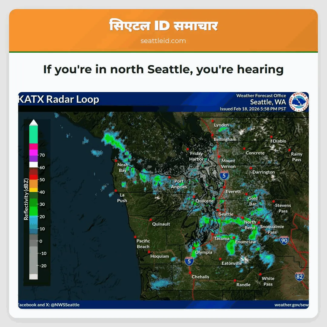 If you’re in north Seattle, you’re hearing things! That was definitely lightning and thunder! Another storm isn’t ruled out as showers wind down this evening. Precipitation type reports are appreciated! #wawx