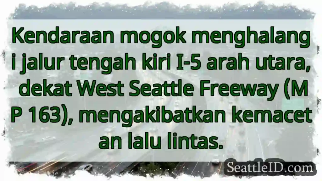 Kendaraan mogok menghalangi jalur tengah kiri I-5 arah utara, dekat West Seattle Freeway (MP 163), mengakibatkan kemacetan lalu lintas.