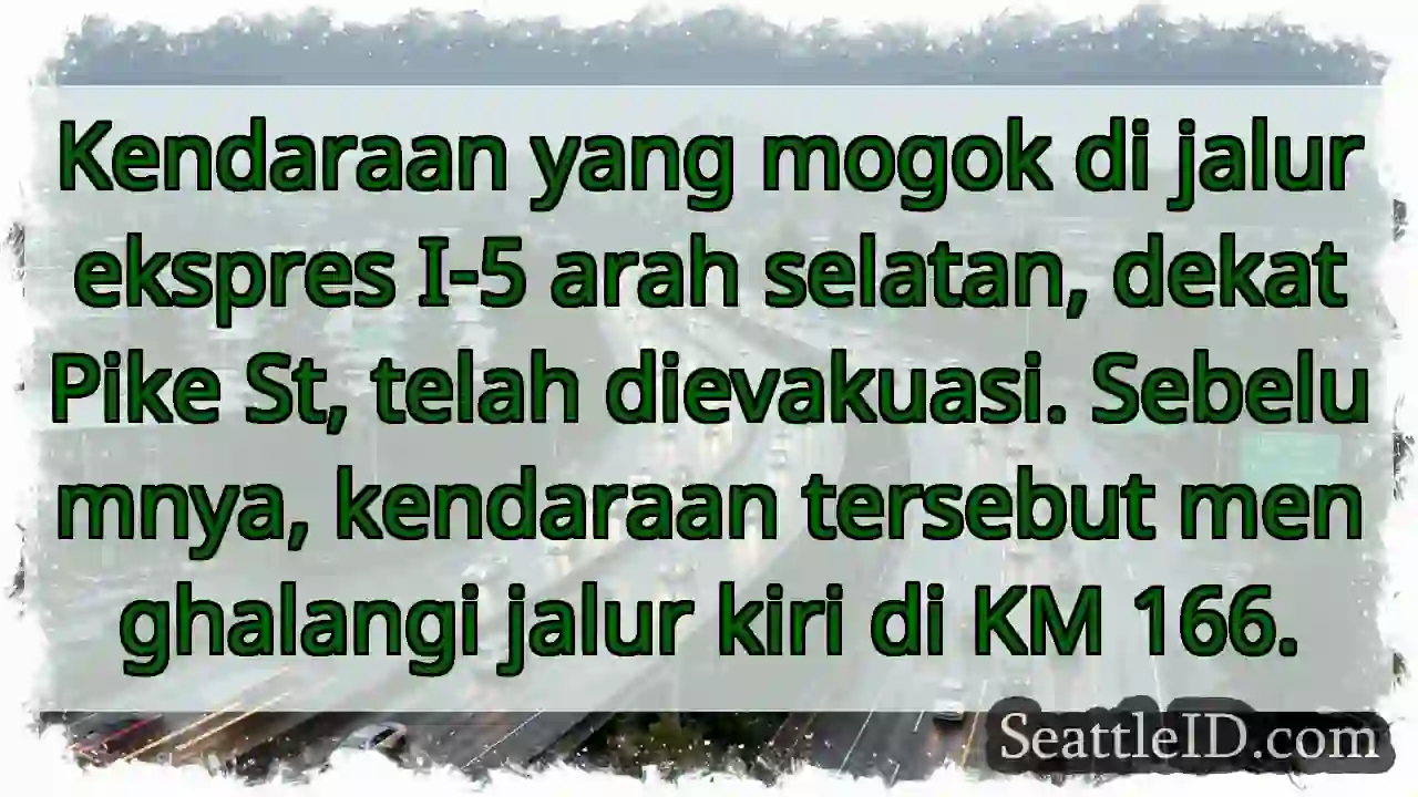 Kendaraan yang mogok di jalur ekspres I-5 arah selatan, dekat Pike St, telah dievakuasi. Sebelumnya, kendaraan tersebut menghalangi jalur kiri di KM 166.