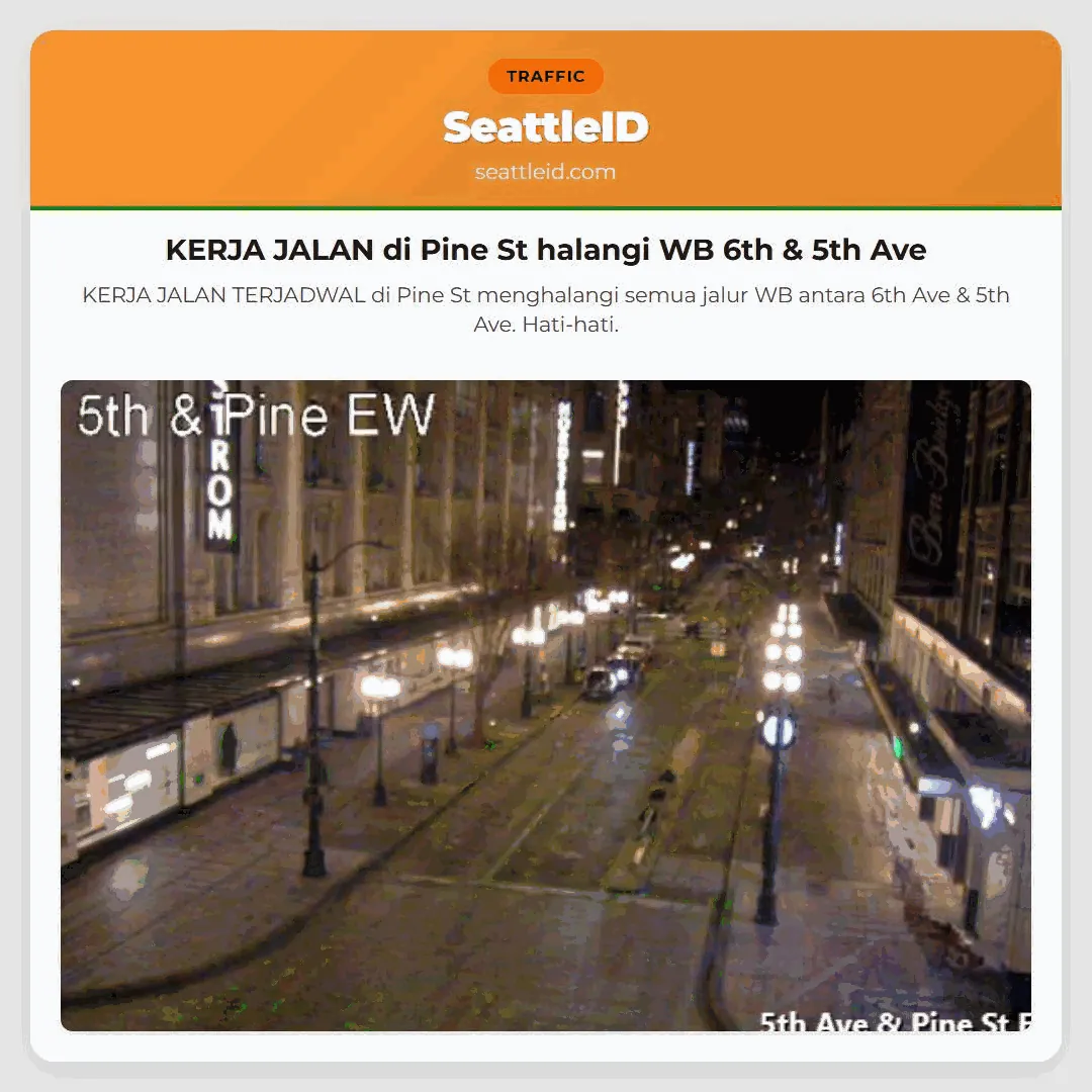 19/02/2026 23:38 Seattle traffic KERJA JALAN di Pine St halangi WB 6th & 5th Ave KERJA JALAN di Pine St halangi WB 6th & 5th Ave KERJA JALAN TERJADWAL di Pine St menghalangi semua jalur WB antara 6th Ave & 5th Ave. Hati-hati. ताजा खबर [SR-531 NB] SR 531 NB/SB east 43rd Ave NE (MP7) collision, [SR-9 NB] Uszkodzony pojazd blokujący pas SR 9 NB 42nd St [I-5 SB] I-5 Selatan: Penghalang di Bakerview Rd (MP257) One recalled item sold nationwide at Trader Joe’s. [SR-99 NB] SR 99: All lanes closed N/S at MP 26 (1st Ave S) Tabrakan 4th Ave S, Royal Brougham Way menghalangi