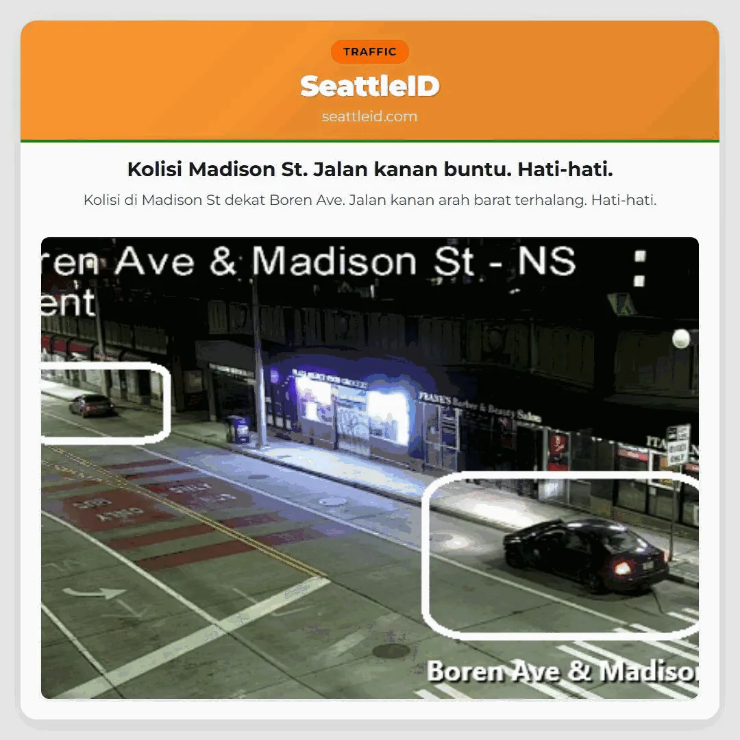 05/02/2026 01:56 Seattle traffic Kolisi Madison St. Jalan kanan buntu. Hati-hati. Kolisi Madison St. Jalan kanan buntu. Hati-hati. Kolisi di Madison St dekat Boren Ave. Jalan kanan arah barat terhalang. Hati-hati. ताजा खबर Keluarga NFL: Legenda & Istri Kolisi Madison St. Jalan kanan buntu. Hati-hati. Anak meninggal, flu? [SR-204] Kecelakaan US 2, jalur kiri ditutup. [I-5 SB] Kendaraan mogok, I-5 KM 172 2 remaja tewas ditembak dekat sekolah.