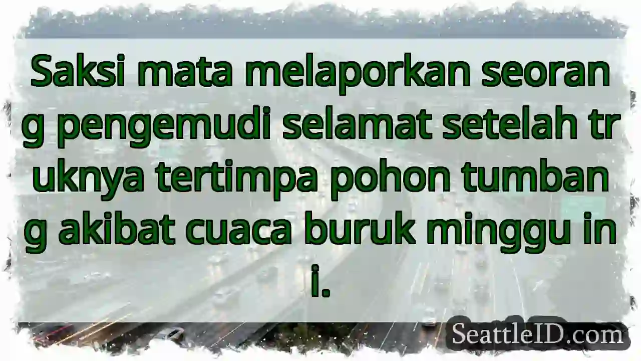 Saksi mata melaporkan seorang pengemudi selamat setelah truknya tertimpa pohon tumbang akibat cuaca buruk minggu ini.