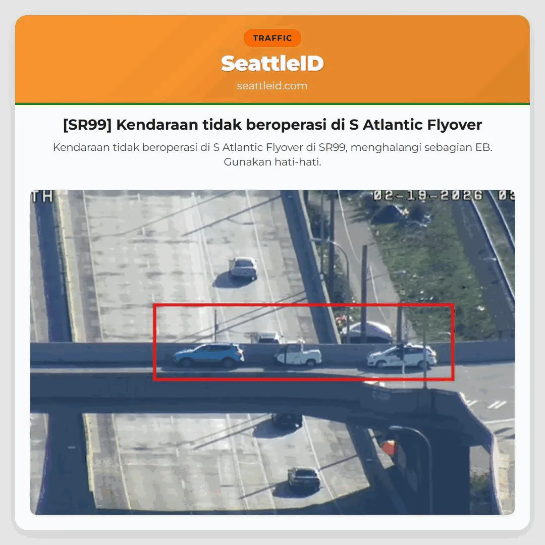 Kendaraan tidak beroperasi di S Atlantic Flyover di SR99, menghalangi sebagian EB. Gunakan hati-hati.