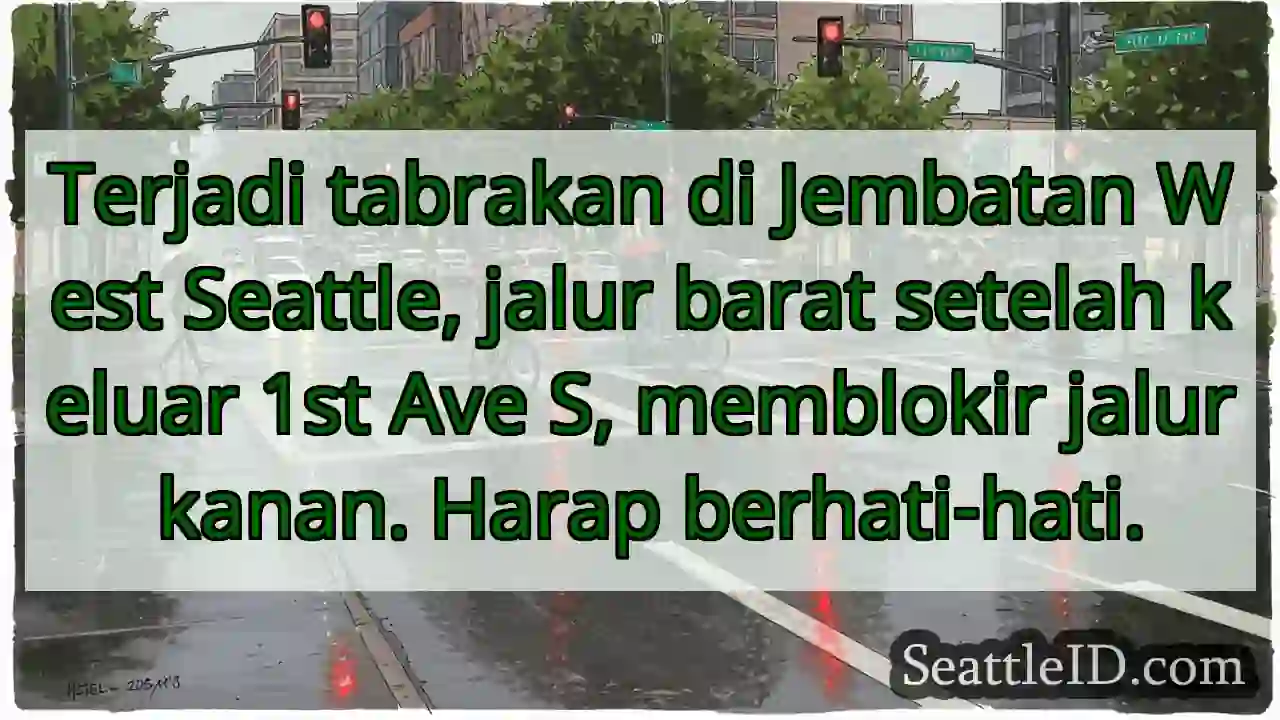 Terjadi tabrakan di Jembatan West Seattle, jalur barat setelah keluar 1st Ave S, memblokir jalur kanan. Harap berhati-hati.