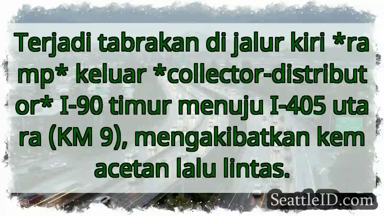 Terjadi tabrakan di jalur kiri *ramp* keluar *collector-distributor* I-90 timur menuju I-405 utara (KM 9), mengakibatkan kemacetan lalu lintas.