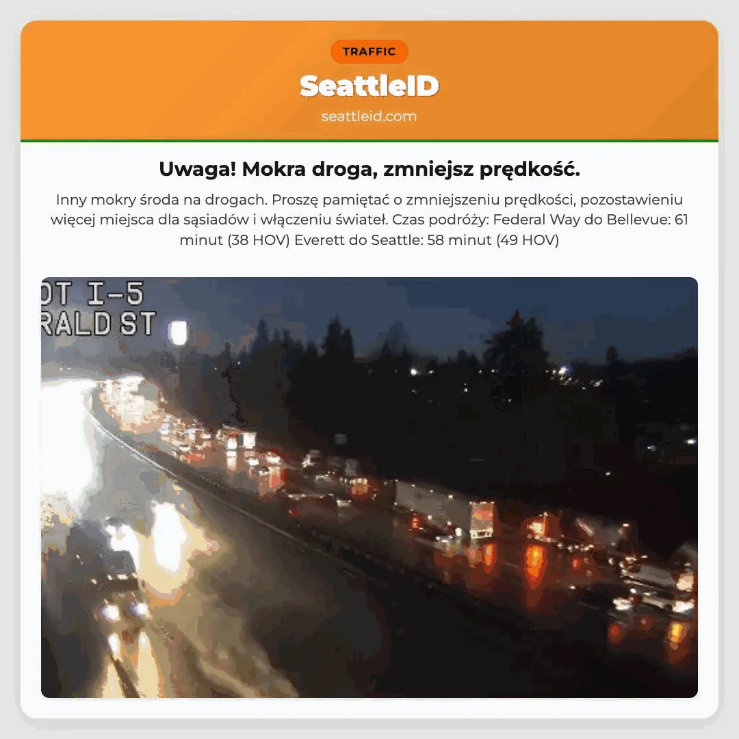 Inny mokry środa na drogach. Proszę pamiętać o zmniejszeniu prędkości, pozostawieniu więcej miejsca dla sąsiadów i włączeniu świateł.