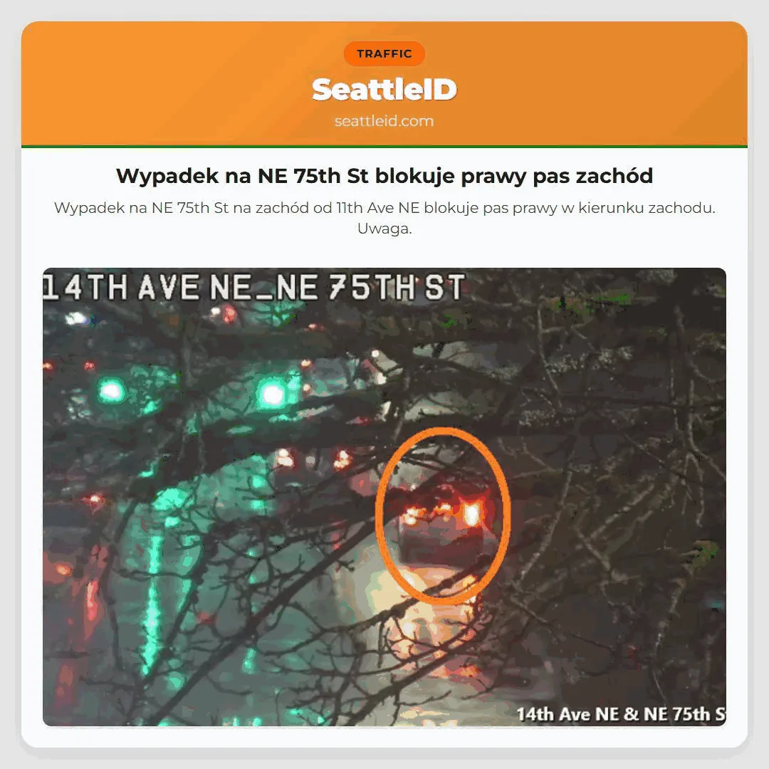 13/02/2026 18:03 Seattle traffic Wypadek na NE 75th St blokuje prawy pas zachód Wypadek na NE 75th St blokuje prawy pas zachód Wypadek na NE 75th St na zachód od 11th Ave NE blokuje pas prawy w kierunku zachodu. Uwaga. ताजा खबर [I-405 NB] I-405 NB, SE 8th St (MP 13) tabrakan 3 lajur kiri [I-90 WB] एसआर 900 (एमपी 15) से पश्चिम की ओर जाने वाले [I-5 SB] स्थिति सुलझ गई 18:37: I-5 के दक्षिण में, NE [I-5 SB] I-5 पर दक्षिण की ओर SR 532 (MP 213) पर एक टक्कर Sound Transit starts light rail sim on Feb 14 via [I-405 NB] आई-405 पर एनई 124वीं स्ट्रीट (एमपी 21) के ठीक
